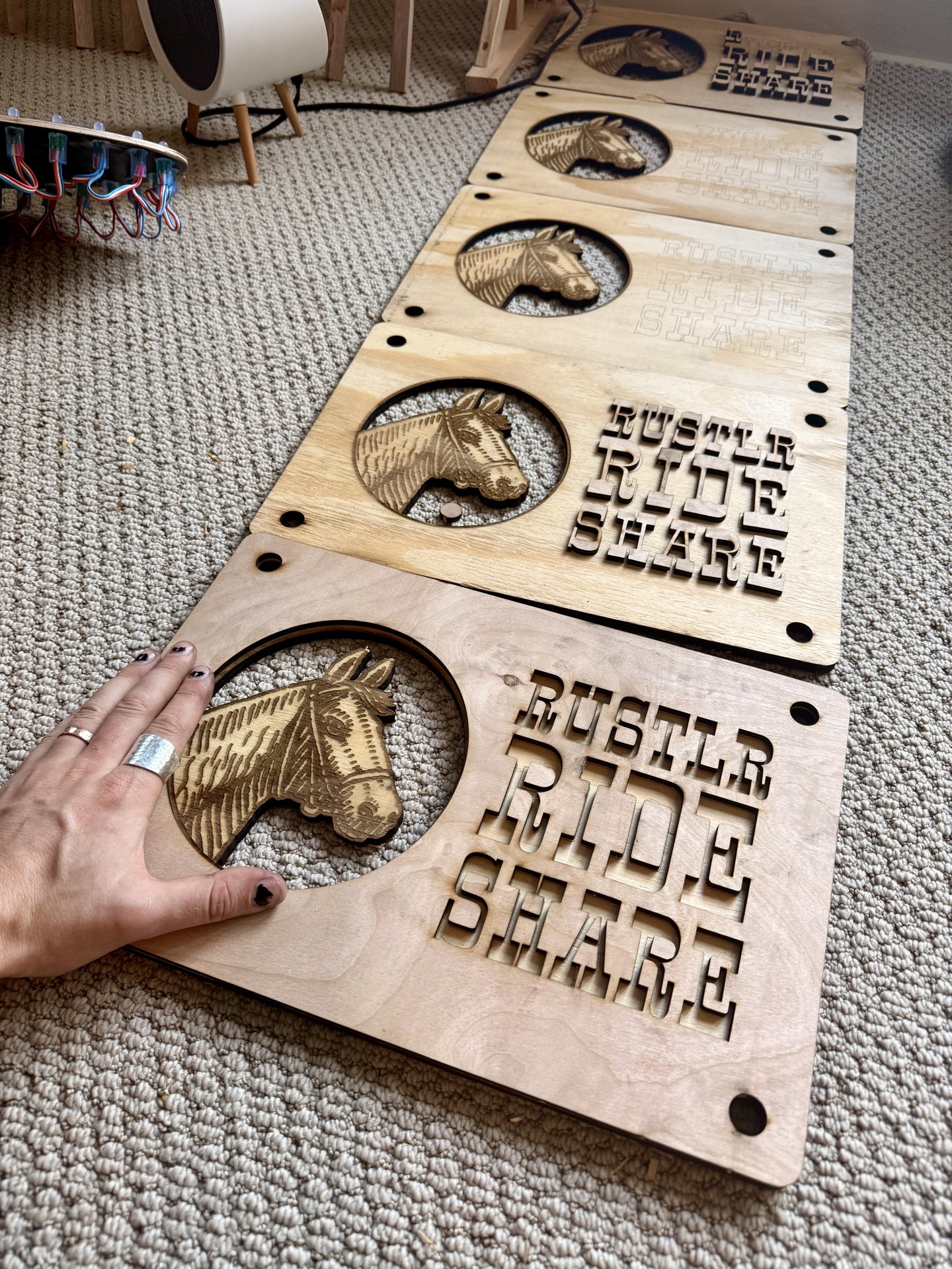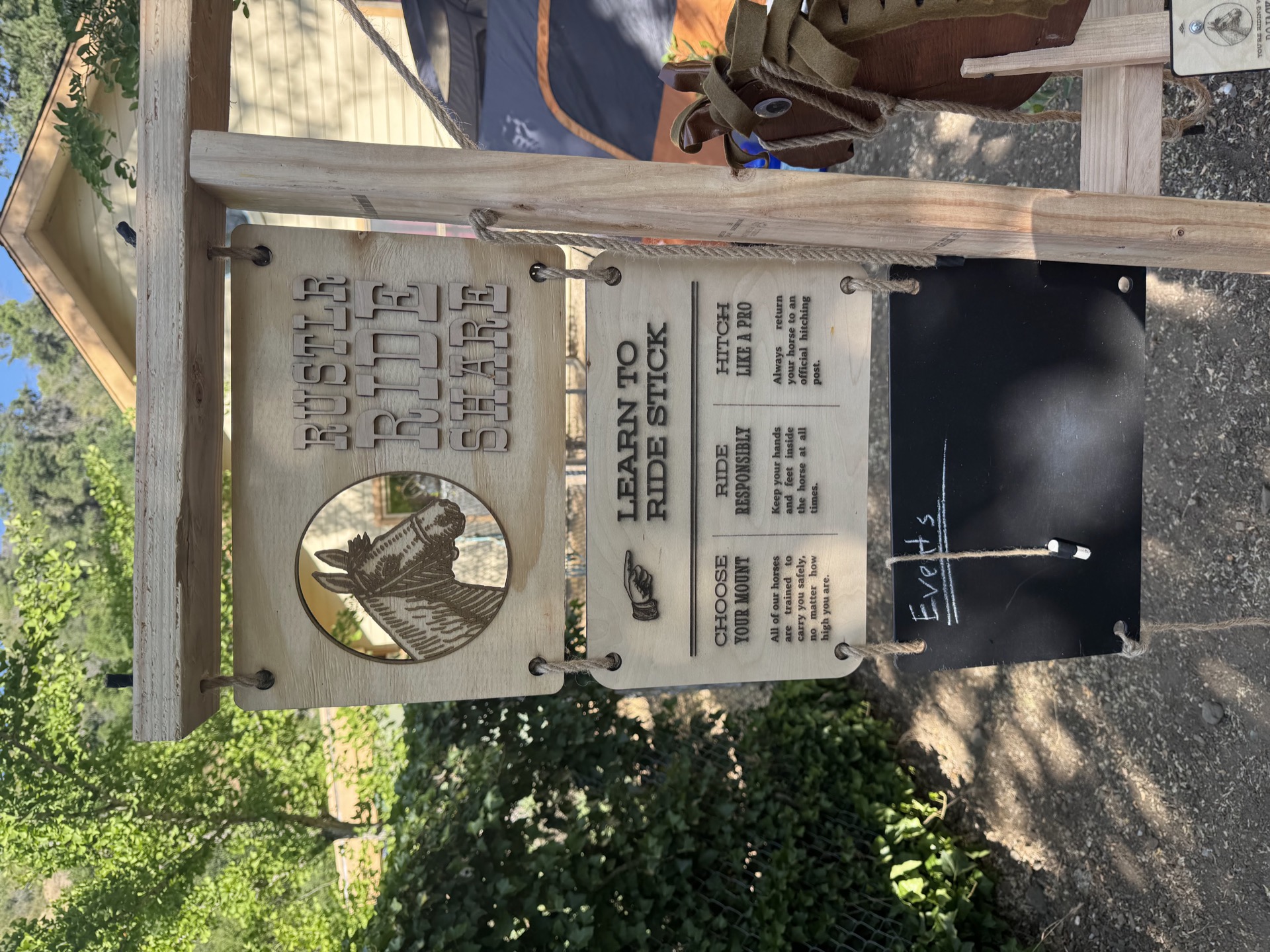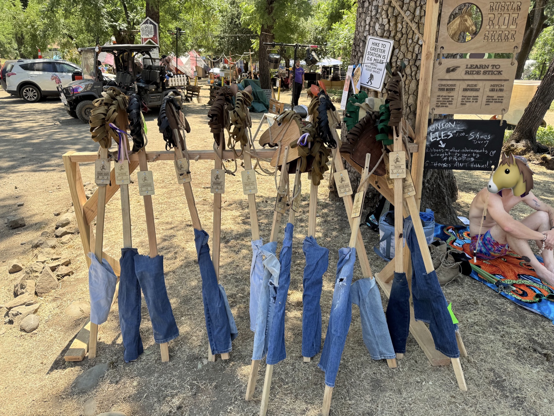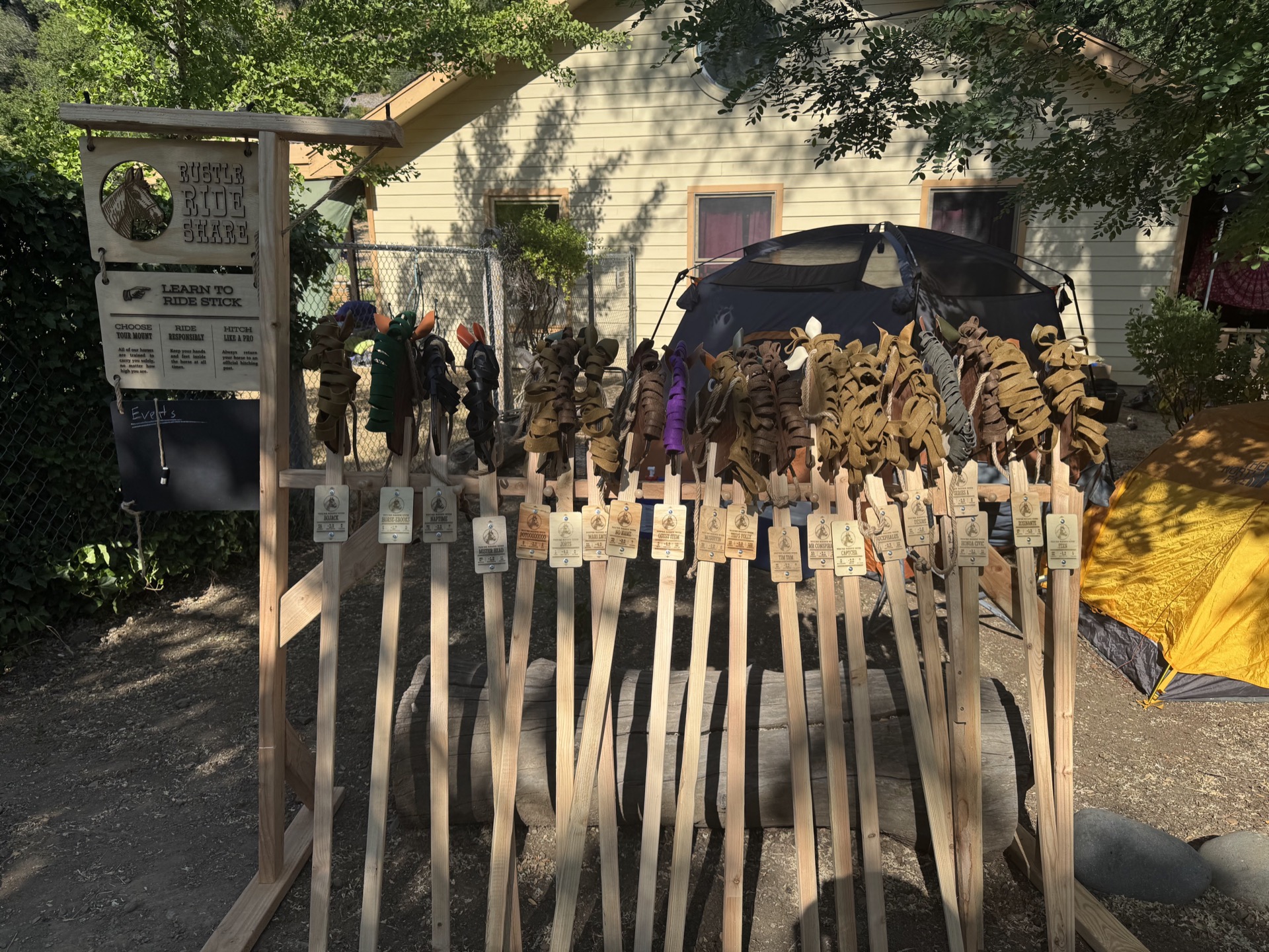 What's a boomtown without poorly-regulated transportation? Rustlr Rideshare brings Silicon Valley's "disruption" to the Wild West with 100 wooden hobby horses available for public use across festival grounds. Participants grab a steed from one of five hitching posts and gallop off into the sunset—though the horses make getting anywhere exactly zero percent easier. This large-scale participatory installation satirizes modern rideshare culture while enabling emergent shenanigans: impromptu races, cattle drives, horse theft, and general ramblin'. Like Lime scooters, the horses end up scattered across the landscape, periodically wrangled by volunteer "Ranch Hands."